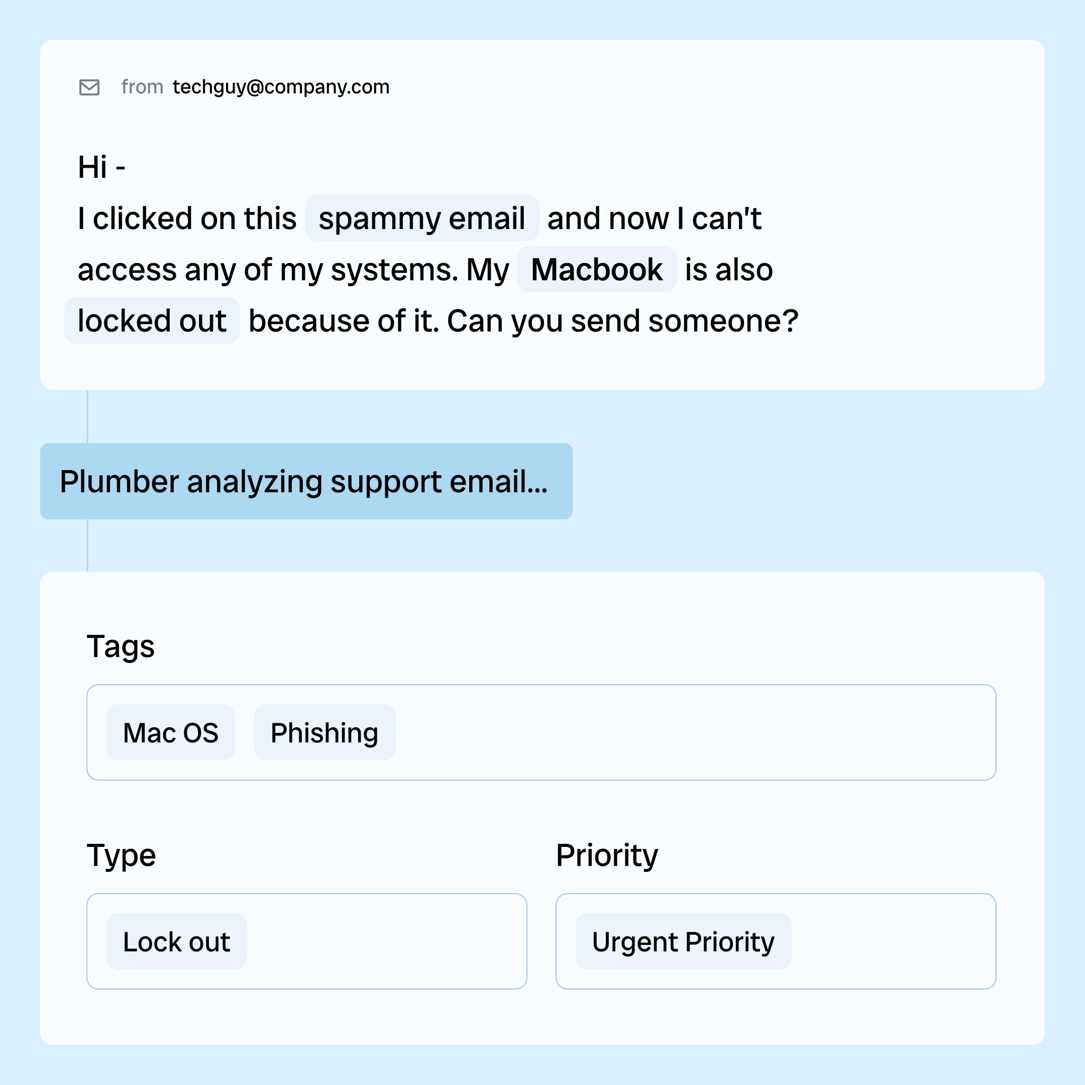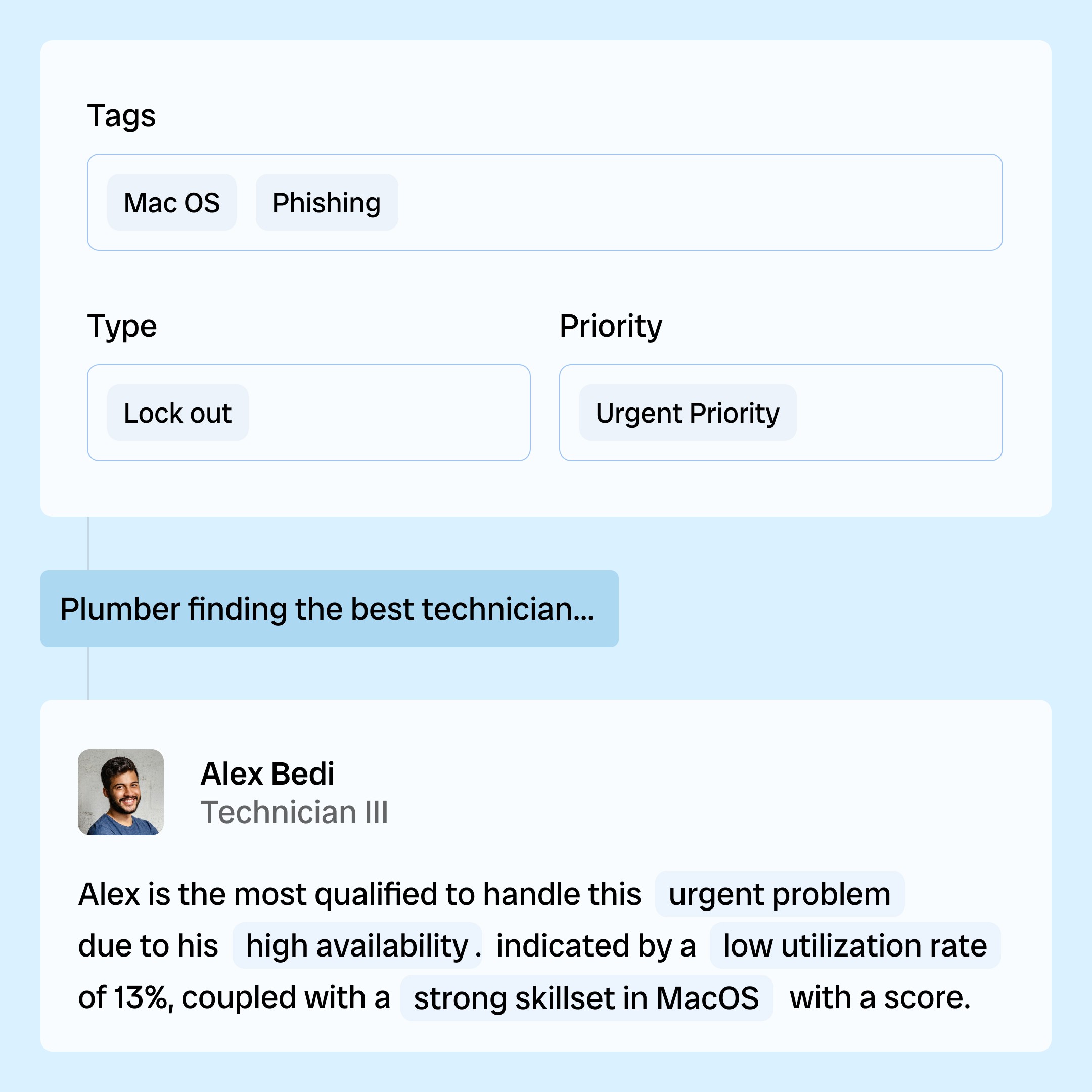 Plumber is AI-native at its core. It uses multiple specialized models trained on real ticket and technician data, designed to learn from outcomes and get smarter with every resolution. The result is a routing engine built for the new cybernetic model, helping MSPs deliver faster, higher-quality service at scale.